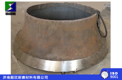 我們濟(jì)南韶欣耐磨材料有限公司,經(jīng)過多年研究試驗(yàn),成功開發(fā)出新型復(fù)合鑲鑄圓錐破碎機(jī)襯板(動(dòng)、靜錐),經(jīng)過客戶現(xiàn)場的大量實(shí)驗(yàn),我們濟(jì)南韶欣耐磨材料有限公司生產(chǎn)的新型復(fù)合鑲鑄圓錐破碎機(jī)襯板(動(dòng)、靜錐),在苛刻的采礦現(xiàn)場操作環(huán)境中的運(yùn)行實(shí)踐證明:在相同破碎比或產(chǎn)品粒度條件下,使用壽命達(dá)到我公司普通材質(zhì)產(chǎn)品壽命的2-3倍。